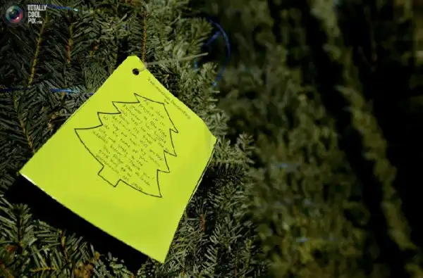 18. Ярлычок размещен на ели учащимися второго класса в питомнике Пик в Джефферсоне, Северная Каролина.