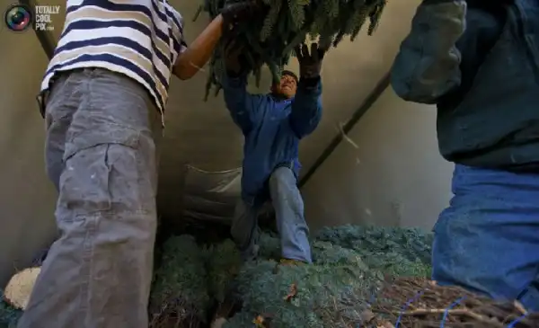 24. Гарсия несет ель для отправки из питомника Пик в Джефферсоне