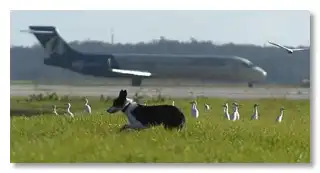 К счастью, у американских ВВС и крупных аэропортов по всей стране есть целый набор ультрасовременных технологий для решения этой проблемы. Так как речь идёт о работе американского правительства, вы, наверняка сразу представили круглые суммы, пущенные коту под хвост. На самом же деле в Международном аэропорту Лос-Анджелеса и некоторых других несут службу «псовые отряды по взаимодействию с дикой фауной». Это – собаки. Кто-то пошёл, купил нескольких бордер-колли и выпустил их на аэродром. Псовый отряд по взаимодействию с дикой фауной бегает туда-сюда, занимаясь обычными собачьими делами, в том числе – гоняет птиц.