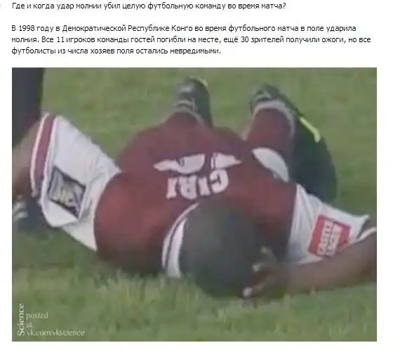 Нам рассказывают о фантастическом везении одной из команд, якобы при ударе молнии в поле - они выжили, а противоположная команда нет.