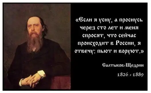 Сама фраза появилась в интернете только в 2009 году, приписывают ее Салтыкову-Щедрину, но ни в одном авторитетном источнике за ним эта цитата не закреплена. Скорее всего переделали цитату Карамзина, которая гласила "Если бы отвечать одним словом на вопрос: что делается в России, то пришлось бы сказать: крадут."