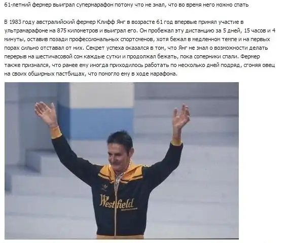 Янг Клифф прекрасно знал о возможности сна во время марафона. Но не спал, так как был "закален".