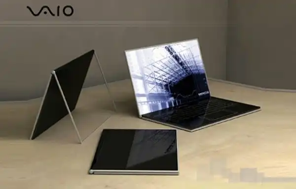 Портативный компьютер Вайо Зума. Увеличение масштаба изображения происходит с помощью голографической технологии, и все это чудо помещено в тонкую стеклянную форму.