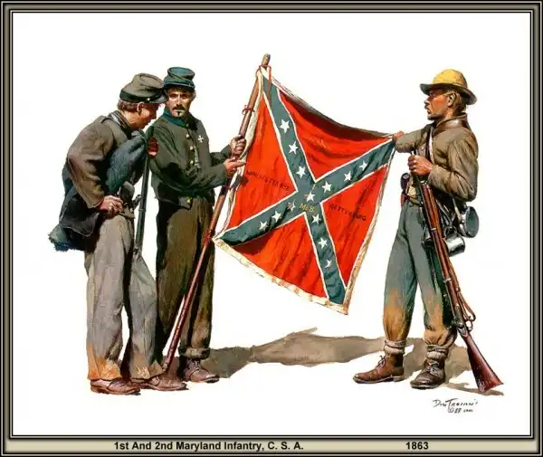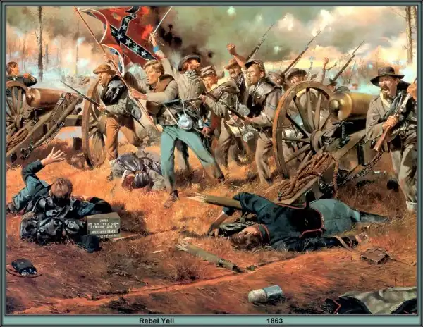 И тогда и сейчас тема Гражданской войны в США привлекала многих художников (естественно, преимущественно американских). В их числе и Дон Трояни.Мало кто может с ним сравниться в изображении батальных сцен. А так же точности и достоверности изображения деталей обмундирования и снаряжения.