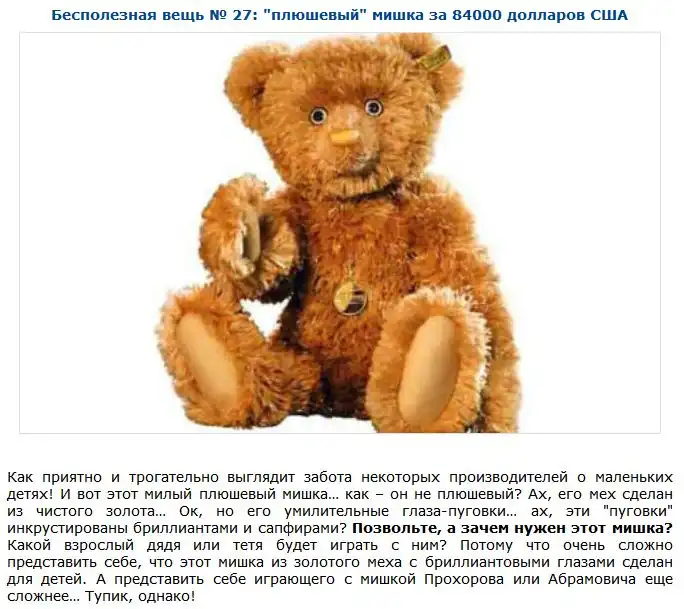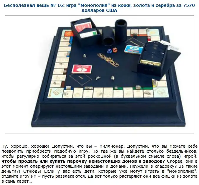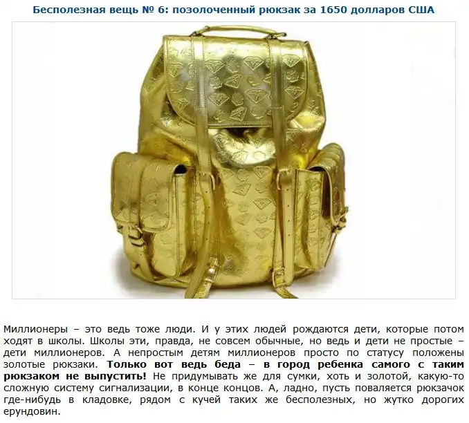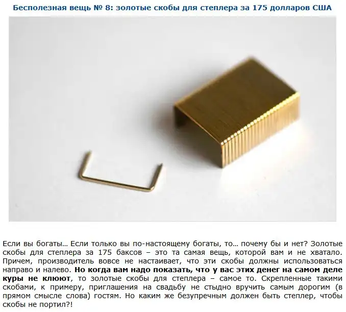 Далее вы увидите подборку самых бесполезных вещей, которые стоят