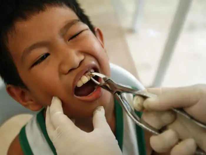 Мальчику удаляют зуб в ходе рекордного стоматологического обследования в трущобах Манилы.