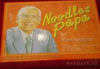 "Однажды я проходил по улице Осаки мимо очереди длиной 20-30 метров, выстроившейся перед тускло освещенной палаткой, из которой валил пар... Одетые в потертую одежду люди, дрожа от холода, часами ждали своей очереди. Человек, который меня сопровождал, сказал, что они хотели получить миску лапши рамен (традиционная японская лапша)",— писал в своей автобиографии Момофуку Андо. Картина дрожащих от холода, голодных сограждан настолько поразила Андо, владельца небольшой пищевой компании, что позже он посвятил свою жизнь тому, чтобы и японцам, и жителям всей планеты больше не пришлось подвергаться унижению ради порции лапши.