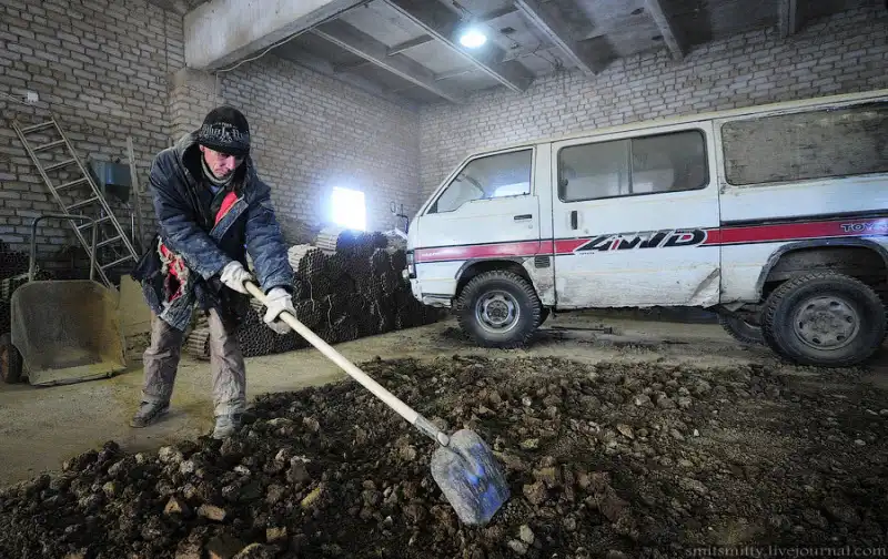 Рабочий готовит глину для запрессовки