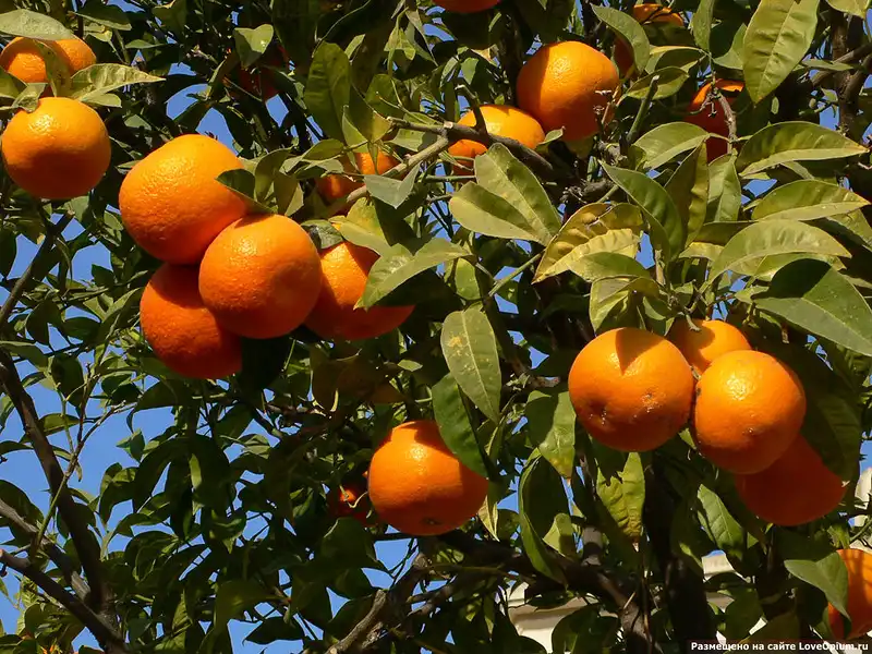 Апельсины растут на апельсиновых деревьях высотой до от 4-6 до 12 метров.