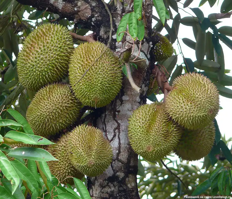 Дуриан — это тропическое дерево семейства Мальвовые, плод которого — фрукт знаменитый как своим вкусом, так и запахом. Родиной дуриана является Юго-Восточная Азия.