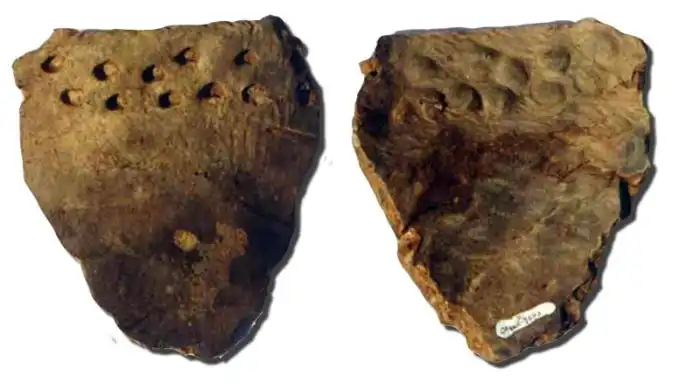 изготовленный в 2950 г. до н.э. Также были найдены керамические сосуды