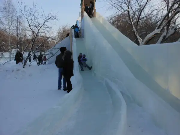Ну и конечно же, мы пошли кататься на горках. В этом году они очень высокие и длинные - даже у взрослых дух захватывает, обязательно надо покататься! Это отдельный совет всем взрослым - не стойте в сторонке, катайтесь вместе с детьми! Для детей это просто счастье, когда родители делают что-то вместе с ними, и сами вы не замерзните.
