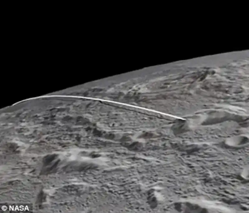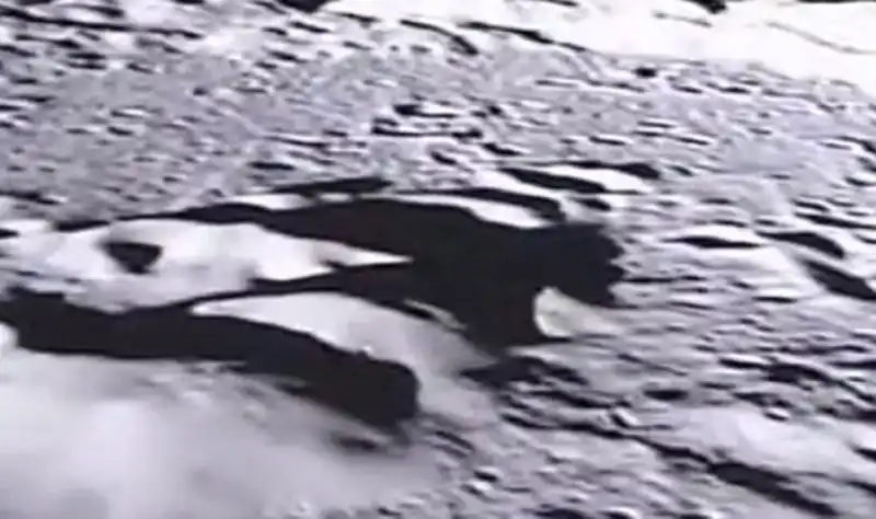Своеобразный сюрприз появляется на 56 секунде обнародованного НАСА фильма, составленного из ряда последовательных фото. Один из зондов пролетает над довольно внушительным объектом прямоугольной формы. По крайне мере так выглядит обращенная к наблюдателю часть конструкции. Она похожа на развалины, в которых сохранился фундамент. Снимает камера, установленная позади зонда, поэтому объект удаляется.