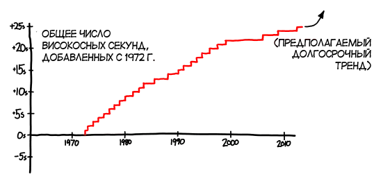 И эта разница колеблется со временем и зависит от погоды и других эффектов (она была немного сокращена в 1990х), хотя в долгосрочной перспективе она однозначно будет увеличиваться по мере того, как Земля замедляется.