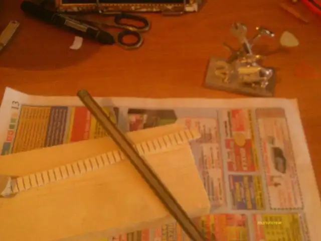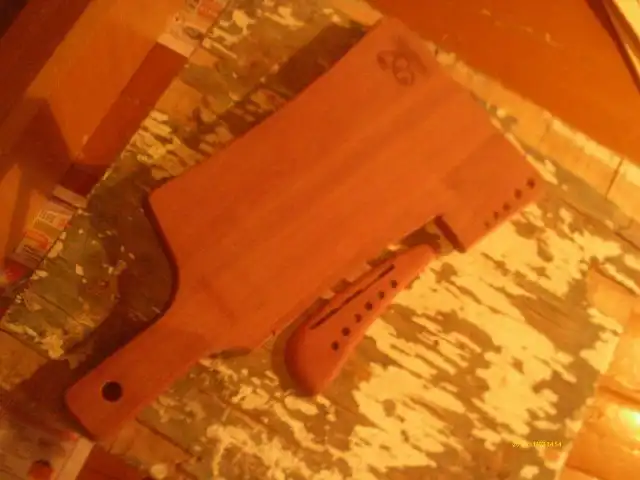 Потом из разделочной доски купленной в ближайшем хозмаге, изготовил подставку для струн: