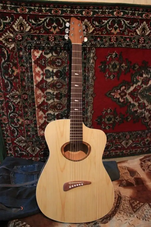 К сожалению, процесс изготовления грифа не был увековечен, но там и нет особых технологических хитростей. В основном утомительная и скушная пилежка напильником))). После покрытия его краской и лаком, пролакировал корпус. И вклеил гриф с подставкой на место. После чего был нанесен еще один слой лака. И вот итоговая фотосессия нашей красотки на фоне Его Ворсейшества: