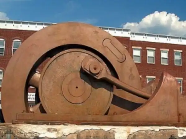 Кинетическая энергия вращающегося маховика определяется следующим образом: E = J w2/2, под J подразумевается собственный момент инерции металлического цилиндра (так как он вращается вокруг оси симметрии), w - угловая скорость вращения.
