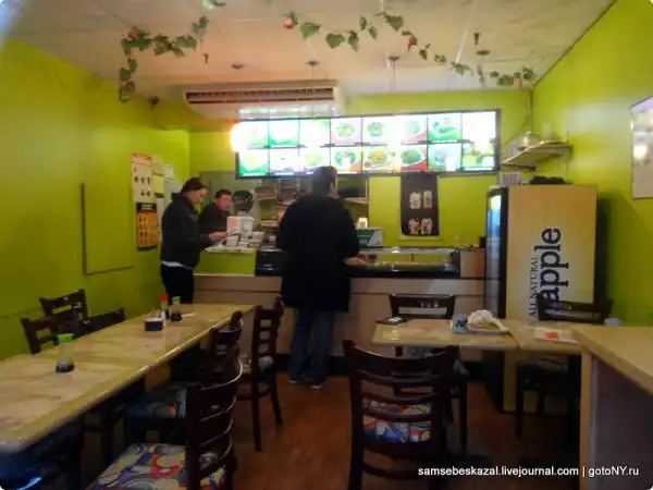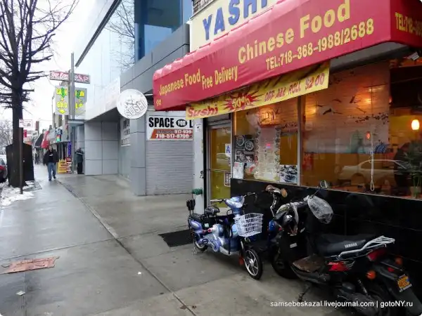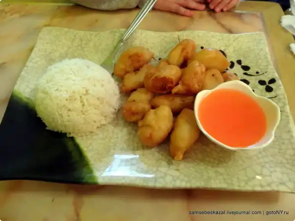 Это дешевый ресторан, который держат китайцы. Суши у них так себе, примерно как в ресторанах сети Евразия в Питере, а вот китайская еда очень даже. Хотя от китайского там одно название. Блюда давно адаптированы под американский вкус, и кухня официально именуется американо-китайской. В аутентичных китайских ресторанах такое не подают. На самом деле это довольно вкусно, и, в любом случае, гораздо лучше гамбургеров с картошкой фри. Мне по приезду в Нью-Йорк всегда первым делом хочется поесть именно такой еды. Живя в Питере я так и не смог найти ничего даже отдаленно похожего. На местной китайской кухне стоит остановится подробнее, но для этого надо сходить в уличный китайский ресторанчик, коих тысячи в Нью-Йорке, и купить еду на вынос. Если тема с едой покажется вам интересной, то я так и сделаю.