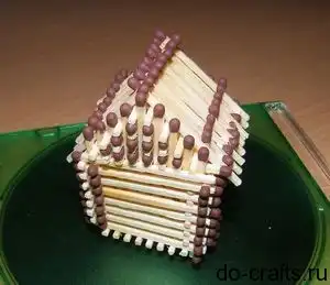 4-й шаг: теперь мы сможем спокойно обжать наше спичечное произведение, не волнуясь за его целостность. Далее надавливаем на вертикальные спички с такой силой, чтобы они появились с обратной стороны. Ведь теперь они представят собой основу верхних этажей.