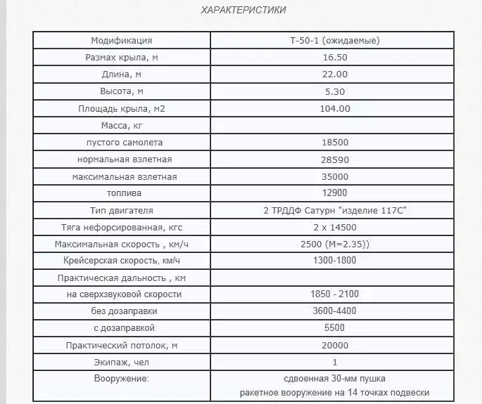 Перспективный авиационный комплекс фронтовой авиации (ПАК ФА) пятого поколения создавался в рамках программы И-21 (наименование программы) как истребитель Т-50 (наименование опытного самолета). Назначение - многофункциональный многоцелевой истребитель. Разработка самолета начата ОКБ им.П.О.Сухого в конце 1990-х годов. В апреле-мае 2001 г. по программе И-21 / ПАК ФА был объявлен тендер в котором приняли участие ОКБ Сухого, ОКБ МиГ с взаимодействием обоих КБ с ОКБ Яковлева по проработке варианта проекта с вертикальным взлетом. Решение государственной комиссии по итогам конкурса принято в начале 2002 г. - выиграл проект самолета Т-50 ОКБ Сухого (главный конструктор - А.Давиденко), как наименее рискованный в реализации и полностью удовлетворяющий тактико-техническим требованиям. В июне 2002 г. решением правительства утверждено решение комиссии, поручено подготовить целевую комплексную программу и приступить к эскизному проектированию. Тактико-техническое задание выдано МО России в июле 2002 г. Эскизный проект Т-50 завершен в ОКБ в ноябре 2004 г. и утвержден МО России в декабре 2004 г. Начаты эксперименты на самолетах-лабораториях. Электронный макет Т-50 (вероятно, компьютерная модель компоновки самолета) продемонстрирована Главкому ВВС России В.Михайлову не позже января 2005 г. К 2005 г. обнародованы наименования Т-50 и И-21 и объявлено о возможной защите технического проекта самолета в 2006 г. К началу 2006 г. макет планера самолета прошел продувки в аэродинамической трубе.