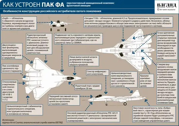 По сравнению с истребителями предыдущих поколений, ПАК ФА обладает рядом уникальных особенностей, сочетая в себе функции ударного самолета и истребителя.