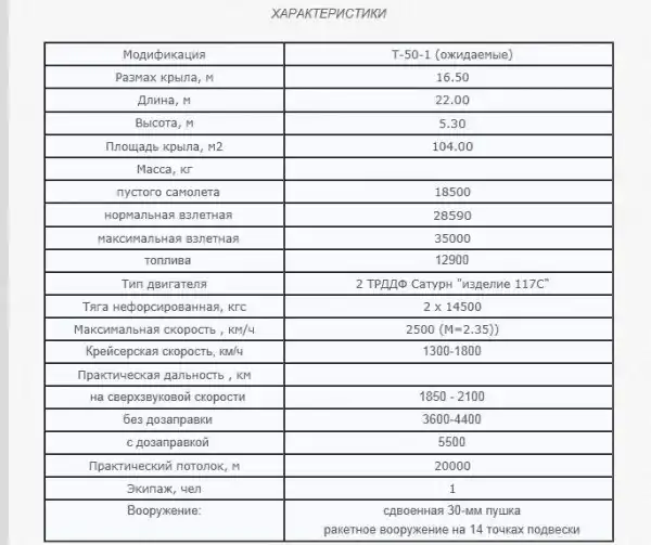 - два центропланных внутренних отсека (на прототипе Т-50-1 вероятно отсутствуют или не смонтированы по состоянию на 29.01.2010 г.) - предположительно.
