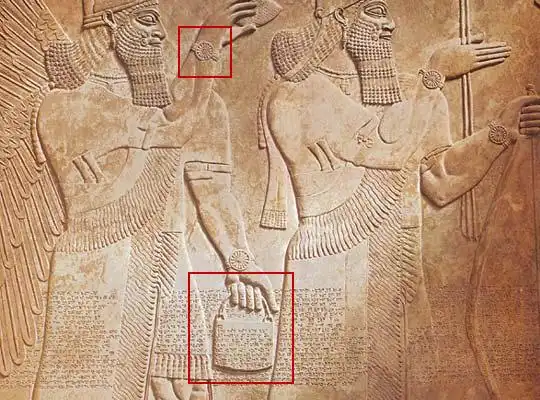 А на этом изображении у бога наручные часы? компас? модная сумочка?