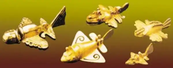 Один из таких золотых самолётиков, найденный в Коста-Рике, хранится в этнографическом музее Берлина. Поступало немало сообщений о подобных находках в Перу и Венесуэле. Но при всем этом ажиотаже фигурки так и небыли признаны учёными копиями самолётов. Они даже не смогли дать чёткого объяснения об их предназначении, только предположив, что фигурки могли быть амулетами либо просто нагрудными украшениями. Хотя они, даже судя по хвостовому оперению (вертикальный киль и горизонтальные стабилизаторы), которого ни у одного из существующих на Земле летающих животных нет, несомненно, отражают летательный аппарат.