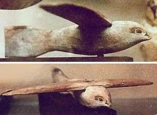 Интересная фигурка в виде птицы была обнаружена ещё во времена ажиотажного поиска золотых фигурок египетским профессором анатомии Халилом Мессиха. Он, являясь членом клуба аэронавтики и Королевского клуба авиамоделистов Египта, заметил, что хранящаяся в витрине археологического музея Каира фигурка птицы из дерева очень похожа на самолёт либо планер. Все, что было в ней птичьего, так это носовая часть в виде клюва и нарисованный с одной стороны птичий глаз.