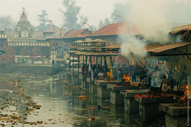 37. Так же как и в Варанаси, в Катманду проводятся церемонии кремации, они проходят в храме Пашупатинатх, который считается одним из наиболее священных мест для индуистов, к месту сожжения допускаются только родственники, однако туристы также могут наблюдать всё действие с противоположного берега реки