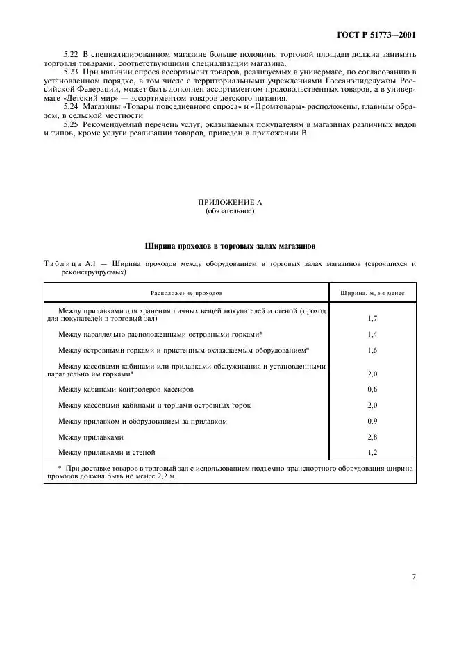 Причем чем магазин больше, тем шире должны быть проходы между полками, вот список :