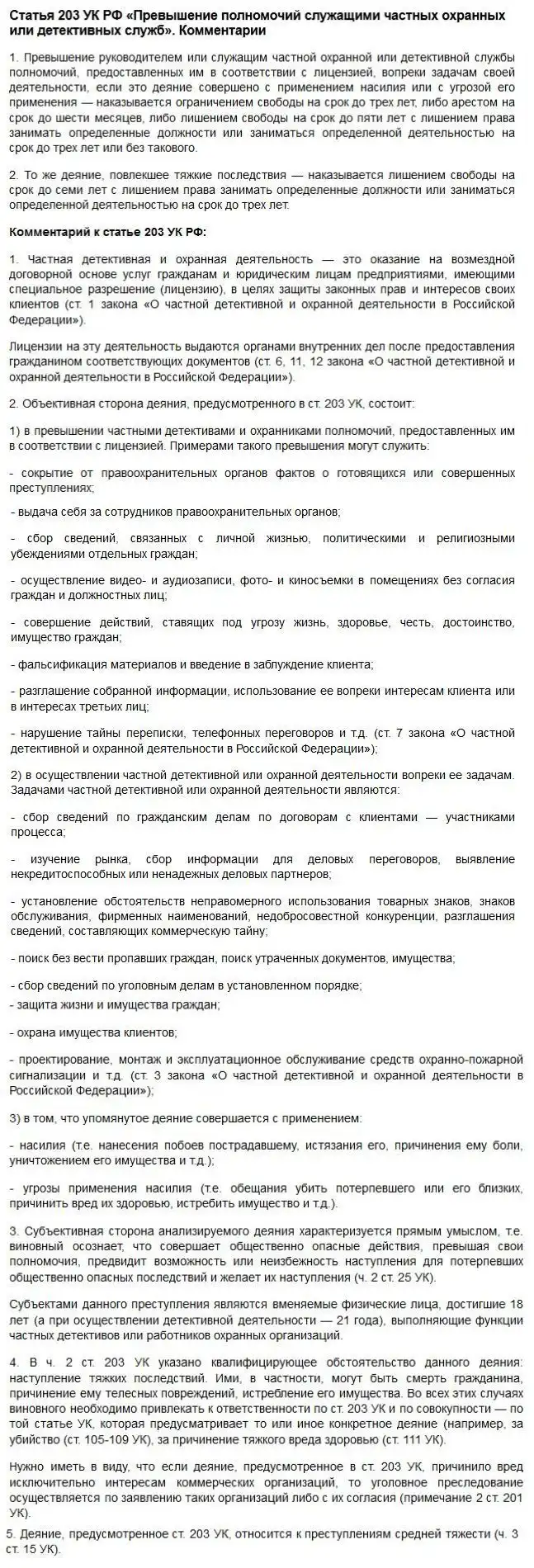 лишением свободы на срок до 7 лет, ибо это -- превышение полномочий служащего Частного Охранного Предприятия (ЧОП).