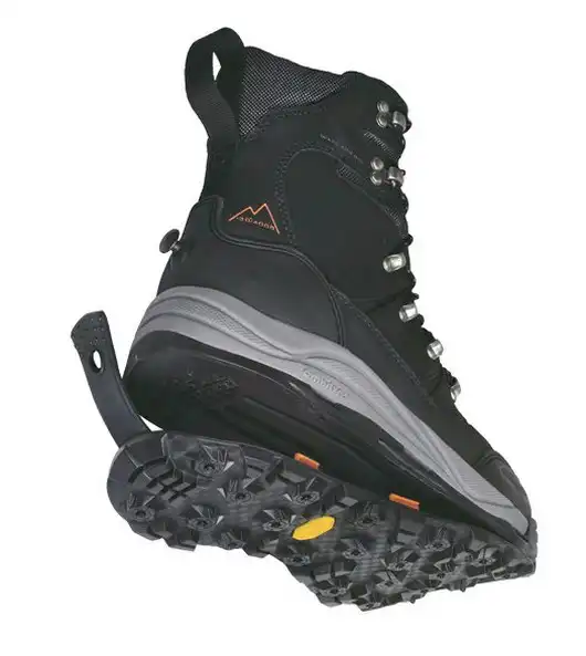 Ботинки Korkers KGB подстраиваются к изменяющемуся ландшафту. Они имеют сменные резиновые подошвы, которые удерживаются на месте пластиковыми зубцами, и имеют различные поверхности для камня, снега и льда. Korkers KGB Vibram OmniTrax: 230 долларов