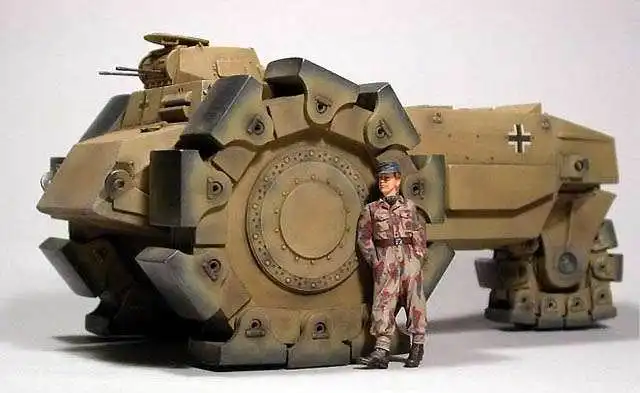 MinenRaumers - разработан фирмой Круппа в 1944 году для уничтожения минных полей. 130 тонн, стальные колеса диаметром 2.7м. Двухсекционный, в каждой секции мотор Maybach HL90. Захвачен союзниками, в частности США.