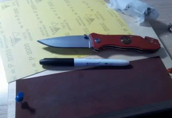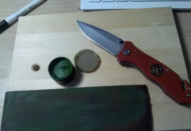 Хочу показать может будет кому то полезен данный способ. Таким спобом можно заточить до очень хорошей остроты практически любой нож - складной, охотничий и кухонный. Данный способ очень дешевый. И так нам понадобиться деревянная разделочная доска, наждачная бумага 3 листа можно и больше, кусок толстой кожи примерно как на офицерских ремнях военных, паста ГОИ, маркер простой и немного усидчивости.