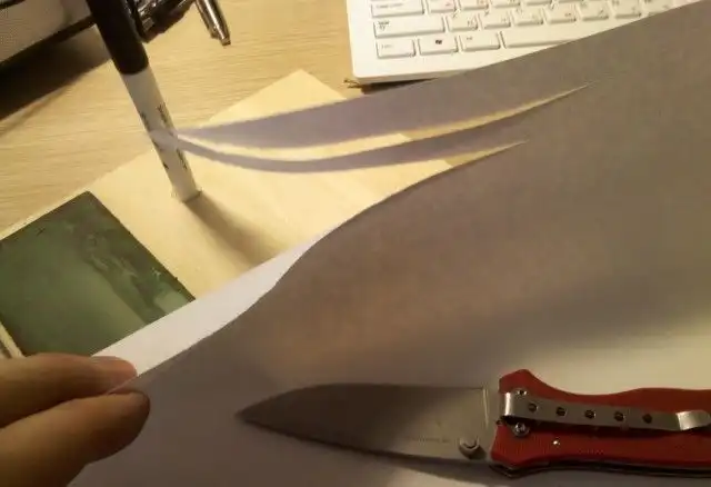 Берем нож и маркером проводим по режущей кромке. Для наглядности и равномерности процесса заточки.