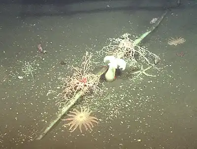 Вот так он выглядит на дне. Каковы экологические последствия прокладки телекоммуникационных кабелей на морском дне? Как это влияет на дно океана и животных, которые там живут? Хотя буквально миллионы километров кабелей связи были размещены на дне моря в течение последнего столетия, это никак не повлияло на жизнь подводных обитателей. Согласно недавнему исследованию, кабель оказывает лишь незначительные воздействия на животных, живущих и находится в пределах морского дна. На фотографии выше мы видим разнообразие морской жизни рядом с подводным кабелем, который пересекает континентальный шельф Half Moon Bay. Тут кабель всего лишь 3,2 см. толщины.