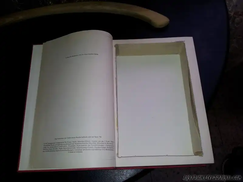 95% нашего тайника готово. Ждем когда все тщательно просохнет и снимаем фанеру. "Сердцевину " кстати тоже можно использовать ,в туалете ))). Ой, извините, отвлекся. Далее приклеиваем заднюю титульную страницу ,ждем когда высохнет .... и опа ! Получаем легкий, стильный и не затейливый тайник.