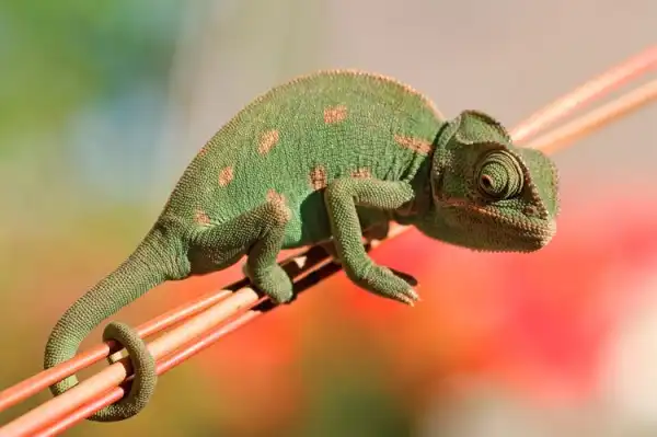 Слово хамелеон в переводе с греческого означает «земляной лев». Самым мелким видом является Brookesia minima, длина которого составляет всего 25 мм; самый крупный, Chamaeleo parsonnii, имеет длину 610 мм. Хамелеон же обыкновенный с гордостью носит латинское имя Chamaeleo chamaeleon, что звучит прямо как вступление песни.