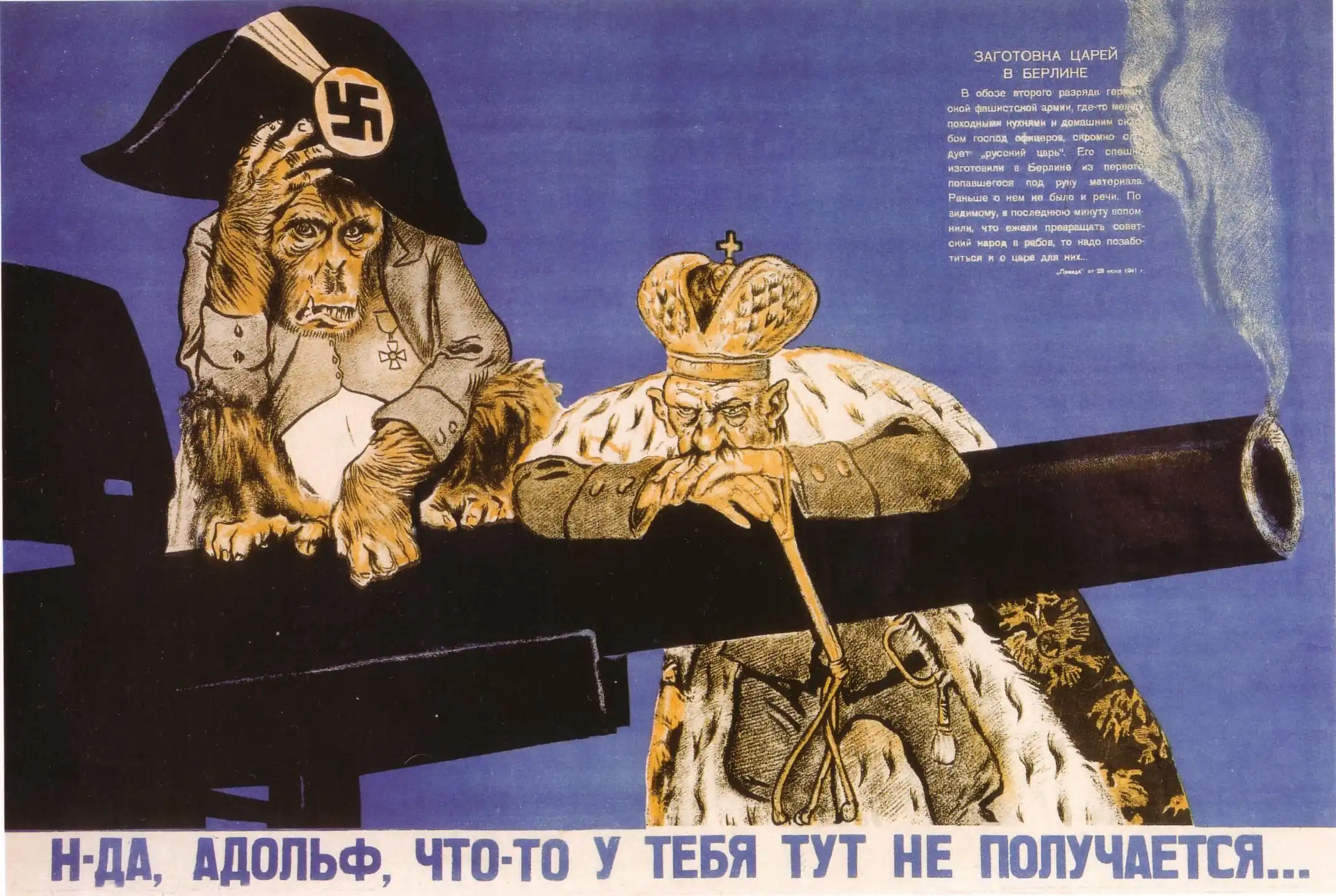 Изображённый на втором плакате «царь» имеет явные черты внешнего сходства с главой Дома Романовых Великим князем Кириллом Владимировичем, принявшим на себя в 1924 г. императорский титул. То, что Кирилла уже три года как не было в живых, авторам плаката было либо не известно, либо не важно. Важны были связи его и членов его семьи с немецкими национал-социалистами.