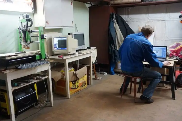 Часы спроектированы, пора выпиливать детали. Пилить будет этот фрезерный станок, управляемый с компа, эмулирующего ЧПУ (надеюсь ничего не напутал).