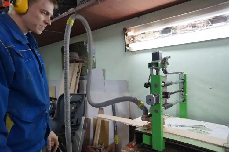 Помогает ему в это пылесос, кстати, тоже самодельный. На фото он слева, если что.