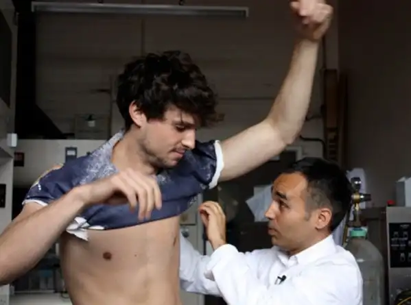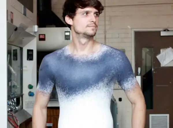 Испанский дизайнер моды Манель Торрес создал первый в мире спрей, который способен заменить целый гардероб. Если распылить струю на голое тело, то на ней осядет самая настоящая ткань! Таким образом, обработав весь торс, можно получить или футболку, или майку, или рубашку.