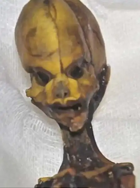 Трупик, как выяснилось, нашел некто Оскар Муньос (Oscar Munoz), чилиец. Нашел 19 октября 2003 года в пустыне Атакама (Atacama Desert) рядом с останками заброшенного храма у поселка Ла Нория (La Noria). Тельце коричневого цвета было завернуто в белую тряпочку. Голова - несоразмерно большая. Во рту - сформировавшиеся зубы. Ребер - 9 пар, а не 12, как у людей. На вытянутом черепе - нечто, похожее на гребень. Одно слово - инопланетянин. На что, собственно, и намекал Грир, подогревая интерес к фильму перед премьерой.