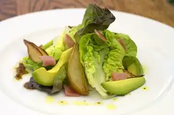 Нарезать кубиками манго и авокадо, нарезать бекон довольно большими кусками и смешать в небольшой миске.
