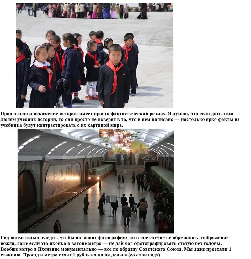 О жизни в Северной Корее мы узнаем исключительно из СМИ (включая и этого "туриста"). а СМИ контролируют миллиардеры. а миллиардеры не любят коммунистов. сами знаете почему. вот и думайте верить ли таким вот "очевидцам"
