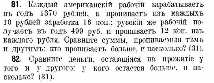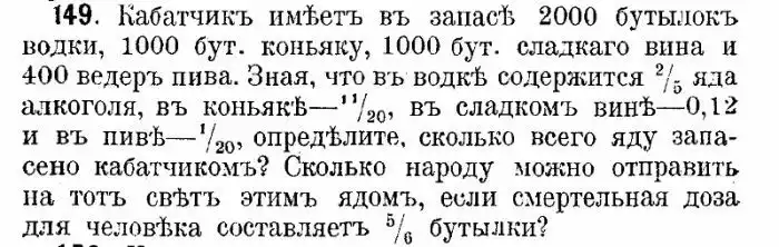 Интересное старое издание, датированное 1914м годом, которое содержит необычные арифметические задачи противоалкогольного содержания. Довольно креативный подход к борьбе с алкоголизмом из прошлого.