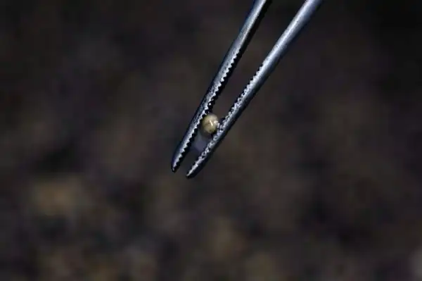 6. Сальман Мархаж, работник рыбной фермы в Израиле: «Прежде чем извлечь икру, для всех рыб старше 8 лет мы устраиваем проверку. Нам надо убедиться, что икра созрела. В животе делаем маленький надрез, и с помощью щупа извлекаем икринки. Здесь мы видим икринки меньше трех миллиметров, надо подождать еще пол-года. Выпускаем рыбу обратно в бассейн». На фото: биологи, занятые на ферме проверкой качества икры.