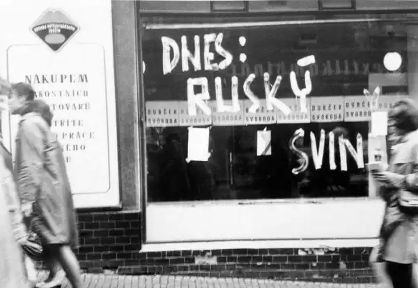 «Беги домой, Иван, ждет тебя Наташа», «Оккупантам ни капли воды, ни ломтя хлеба», «Браво, ребята! Гитлер», «СССР, убирайся домой», «Дважды оккупированы, дважды научены», «1945 — освободители, 1968 — оккупанты», «Мы боялись Запада, на нас напали с Востока», «Не руки вверх, а голову выше!», «Космос вы покорили, а нас — нет», «Слону ежа не проглотить», «Не называйте это ненавистью, назовите это познанием», «Да здравствует демократия. Без Москвы» — вот только несколько примеров такой настенной агитации.