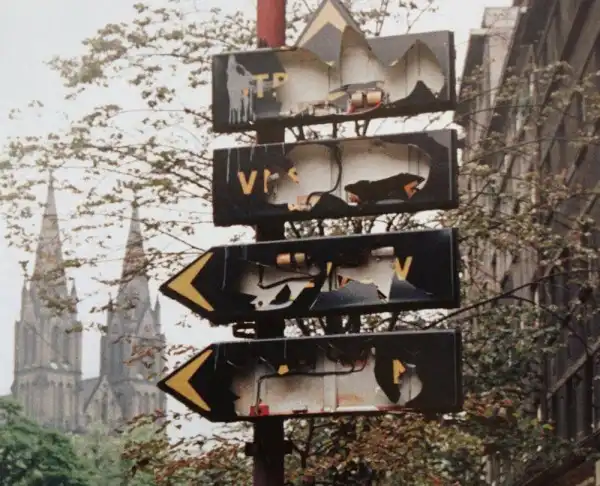 По всей Праге начались массовые акции саботажа. Чтобы затруднить ориентацию в городе для военных пражане начали уничтожать уличные указатели, сбивать таблички с названиями улиц, номера домов.